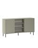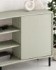 يضيف هذا البوفيه لمسة من الهدوء الاسكندنافي والعصري. لونه الأخضر الساجي (أو الأخضر الرمادي الفاتح) العصري يبرز بفضل الأرجل الرفيعة من المعدن الأسود. يوفر تخزينًا ذكيًا: خزانتان جانبيتان مغلقتان وقسم مركزي مفتوح مع رفين، مثالي للعرض أو الوصول السريع. مثالي لغرفة المعيشة، غرفة الطعام أو مدخل عصري.